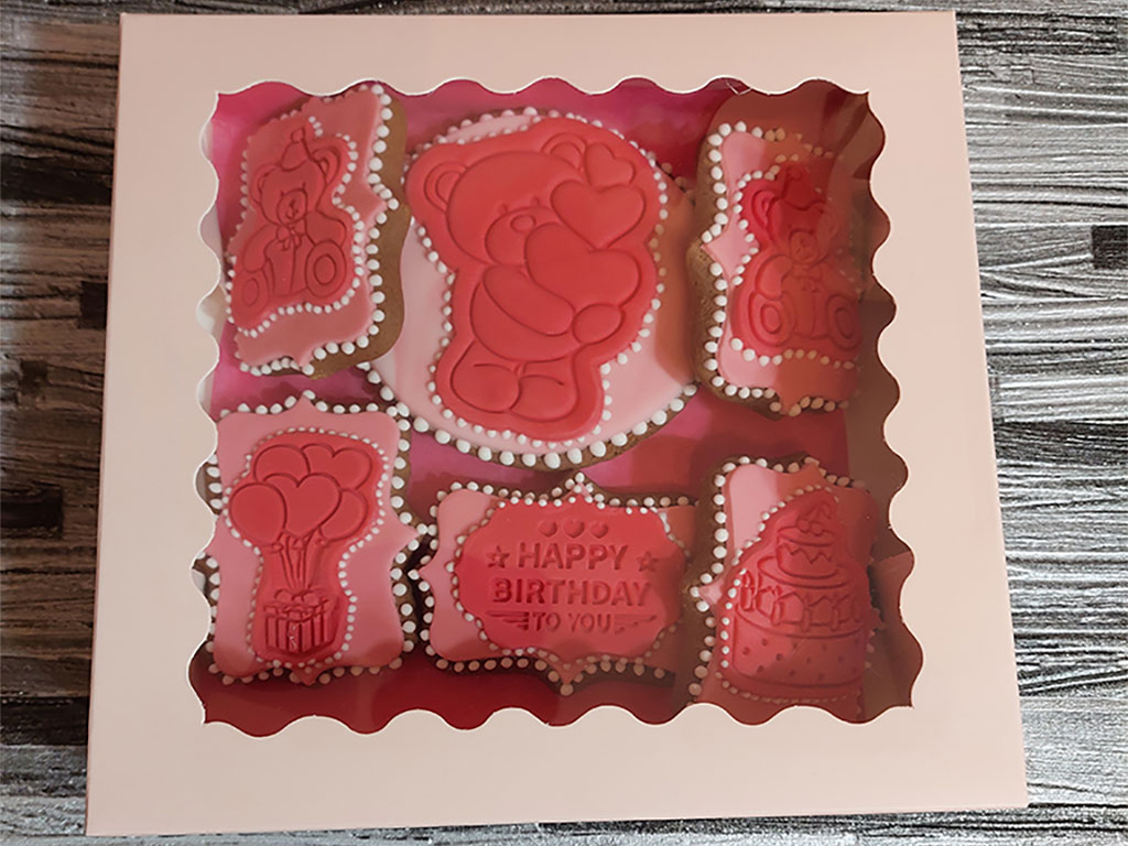 Wedding gingerbread favors and place cards Birthday and holiday-themed gingerbread creations Corporate gifts and customized gingerbread for business events